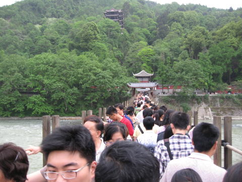 | 2011年5月1日撮影 「都江堰」のあるエリアに到着.もの凄い観光客です. |