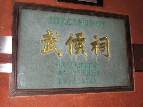 | 2011年5月2日撮影 三国志の宰相諸葛亮(孔明)を祀る「武侯祠」.隣接する主君劉備玄徳の陵墓と併合されましたが孔明のおくり名である「忠武侯」として親しまれています. |