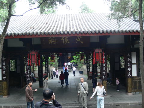 | 2011年5月2日撮影 この門をくぐると諸葛亮(孔明),劉備玄徳や関連する武将の像を観ることができる. |
