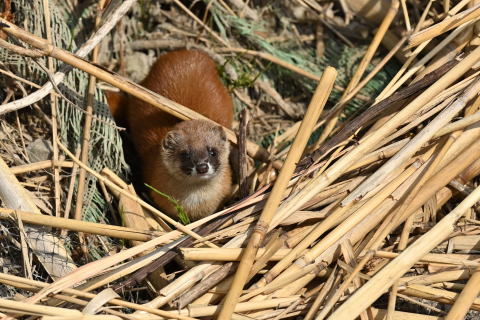 2022年2月17日撮影 暫くして,草が不自然に動くので望遠レンズでチェックすると草の間か らこちらを見ていることが分かりました.やはり気になるんだろうな~ ! ※写真はトリミングしています |