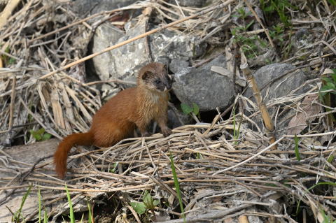| 2022年4月8日撮影 今日は春らしいポカポカ陽気です.絶好の“子イタチ”日和に間違いな し!と信じて来てみるとバッチリでした. |